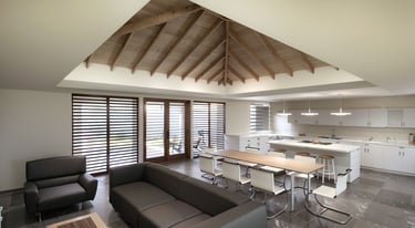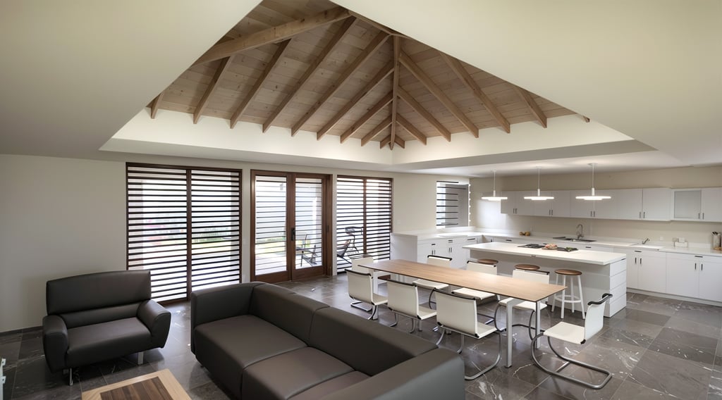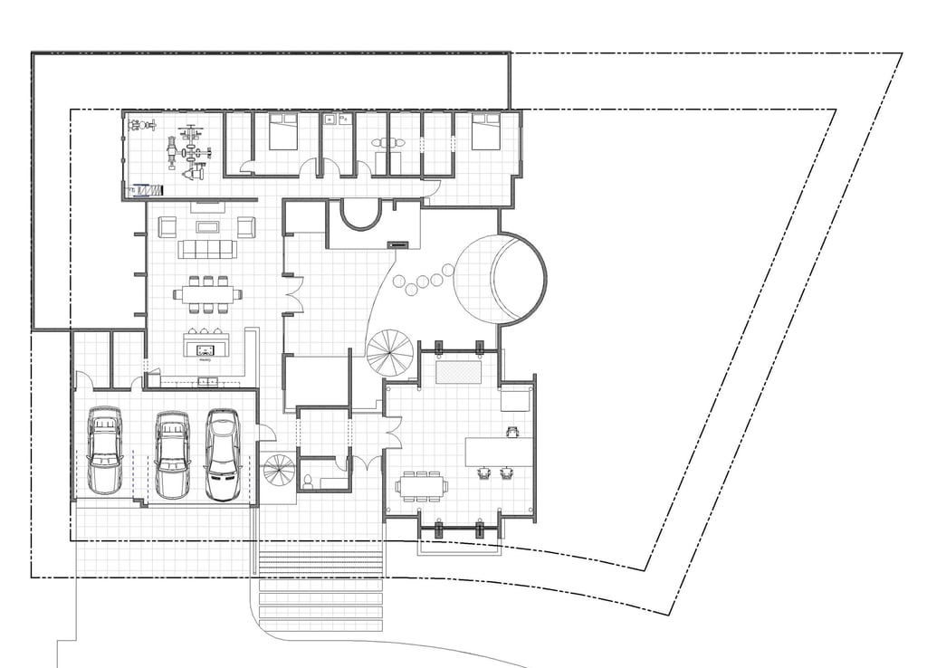 HORIZON HOUSE is an elegant and discreet home organized around an interior patio, which houses a terrace and spa. This allows residents to get in contact with the outdoors while in a safe and private environment.