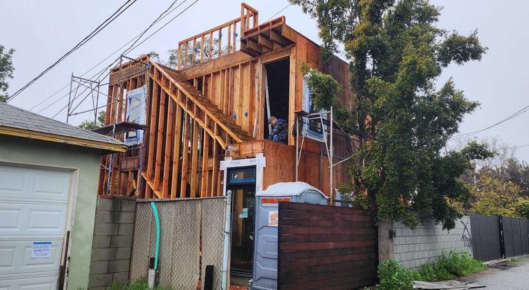 The client was looking to build one detached two-story ADU with a total area of 1,200 sf. Each floor contained a separate rental unit, resulting in two units within the ADU
