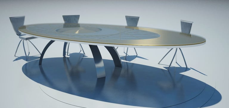 The design of this sculptural table is inspired by the art of Heriberto Nieves with the intention to bring the circular shapes that characterize his work and fascination with the mystical roundness of the moon to a functional art.
