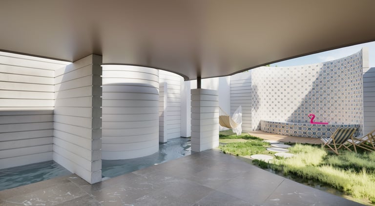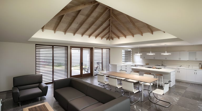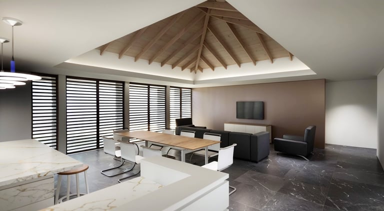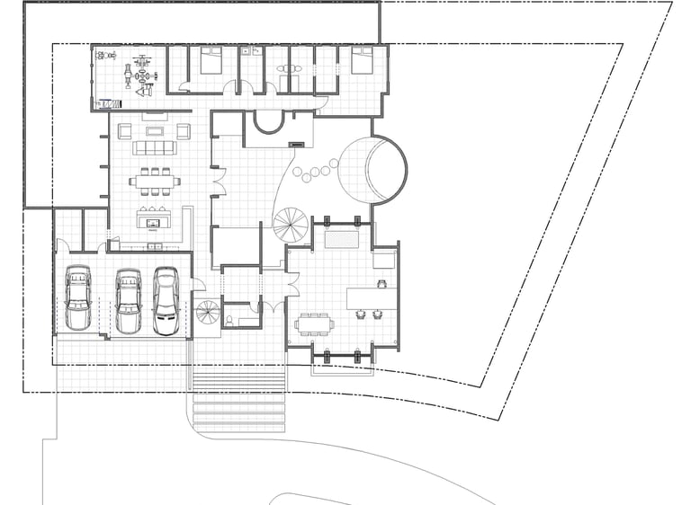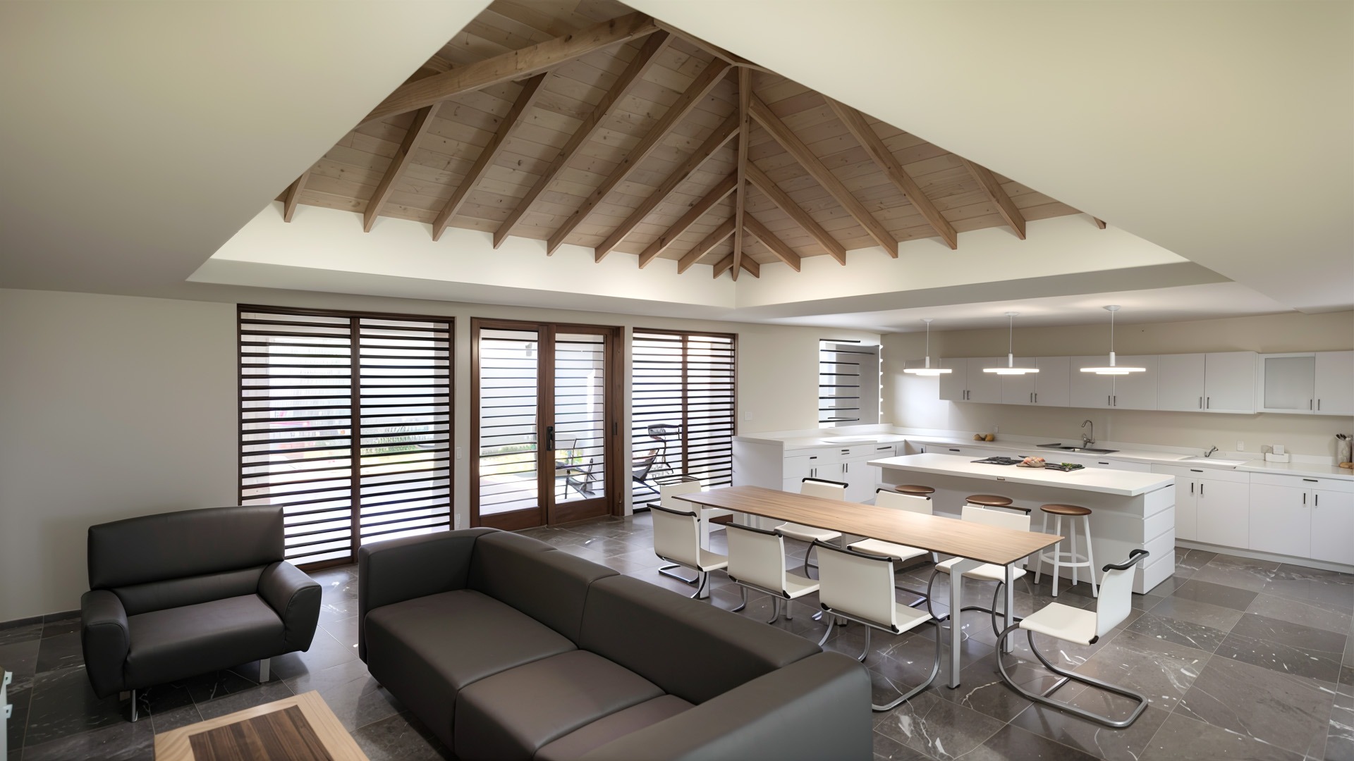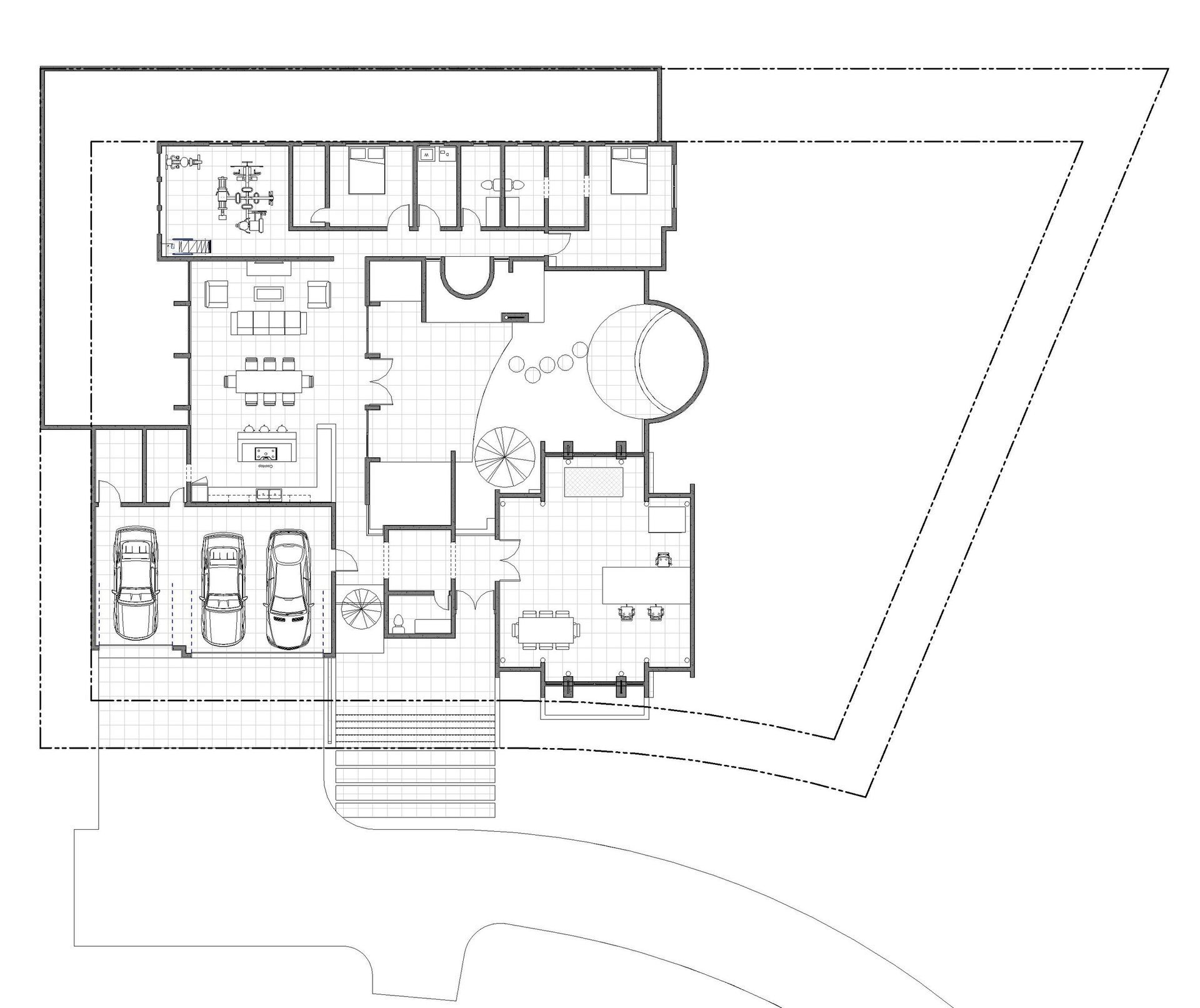 HORIZON HOUSE is an elegant and discreet home organized around an interior patio, which houses a terrace and spa. This allows residents to get in contact with the outdoors while in a safe and private environment.