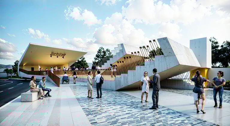 Inspired by the shape of a Dujo (the seat of the Taino indian chief) this plaza frame a direct view to El Yunque Peak. At the end of the plaza resides an amphitheater designed for optimal acoustics and views to the stage, making it the perfect gathering place for concerts and community events. The unique design of the bleachers ensures that every attendee has a clear view of the stage even from the main plaza, enhancing the overall experience for visitors.