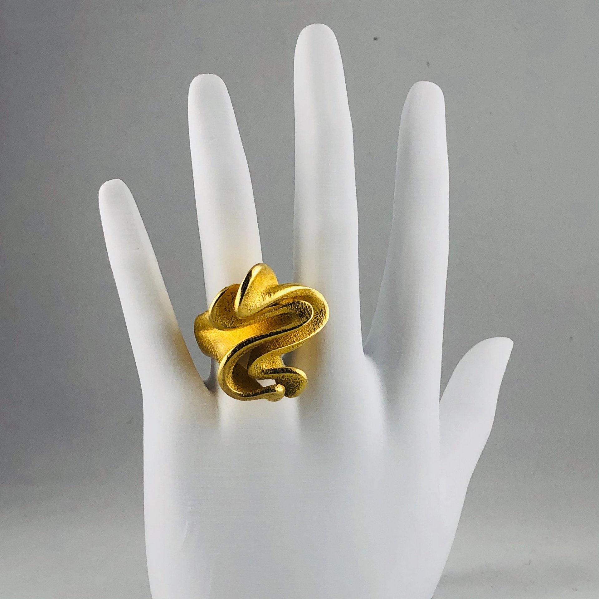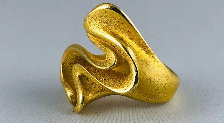 SINUOSA RING is a stunning statement ring with unique, eye-catching curves. This bold and stylish piece is sure to make a statement and is perfect for anyone looking to add a touch of modern elegance to their jewelry collection.
